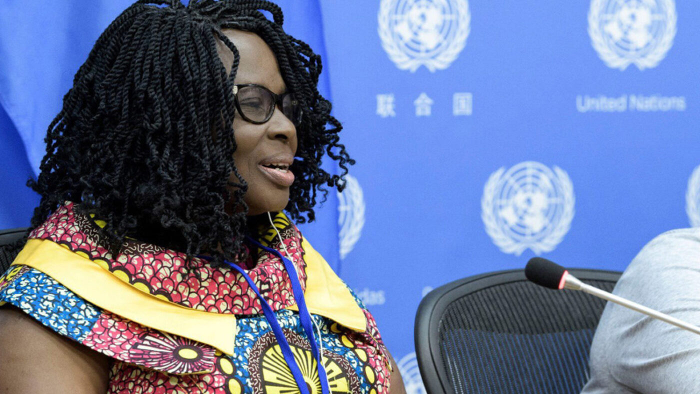 Gertrude speaking on behalf of the Convention on the Rights of Persons with Disabilities Committee at a United Nations event.